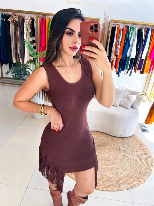Então prepare-se para se apaixonar por esse Vestido em tricot com franjas laterais, a peça que une o charme do country com o toque sofisticado do tricot rayon.